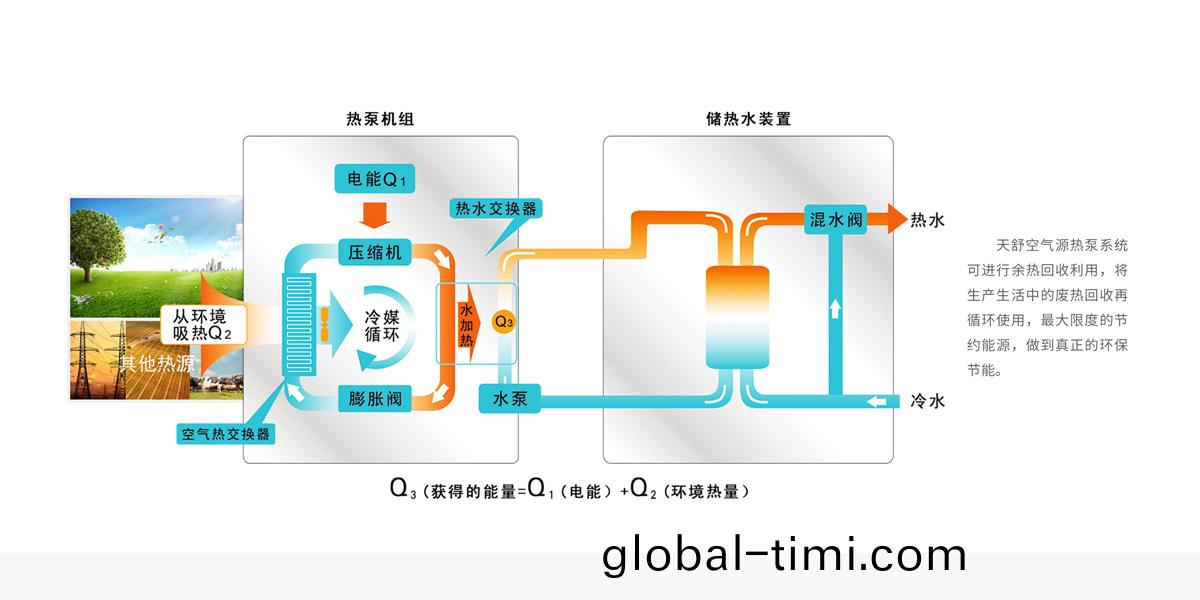 洗浴后的廢水被收(shou)集起(qi)來,迴收其中的廢熱,廢水本身(shen)降至低熱(re)溫度下被排齣,收集(ji)的熱量通過熱(re)泵再進行循環進行熱水製造。