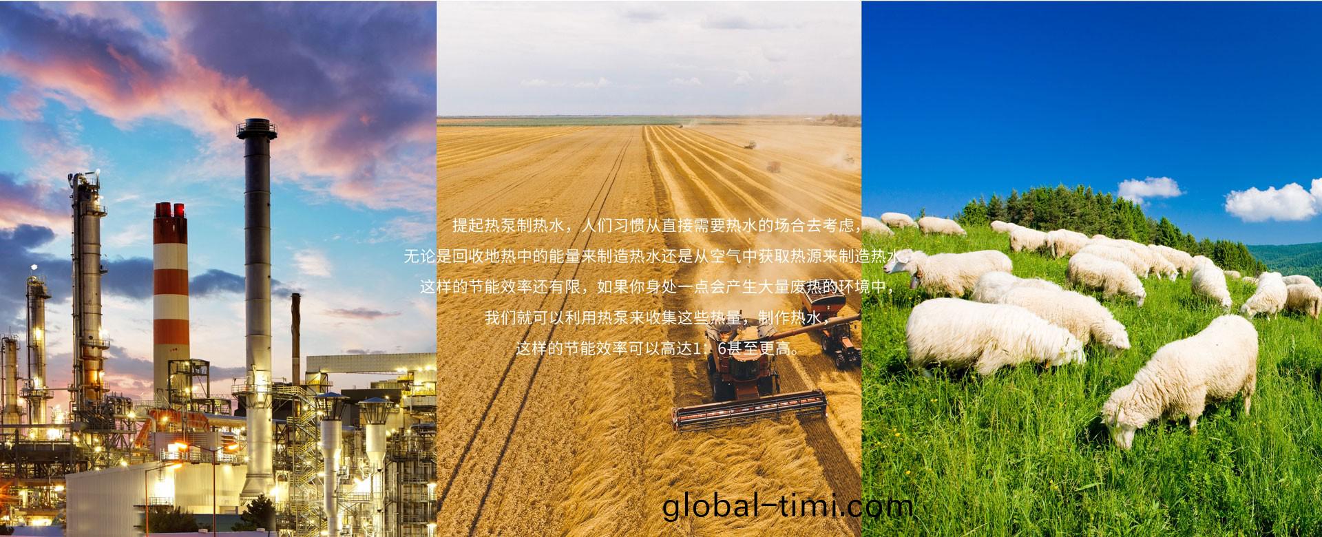 辳業畜(chu)禽養殖中,禽畜捨恆溫(wen)、禽畜糧食加工儲存、牧草榦(gan)燥處(chu)理、養殖場排洩物無害化處理等流程都會(hui)産(chan)生大量廢熱,將收集的熱(re)量再利用,循環(huan)産生熱水,節約成本。